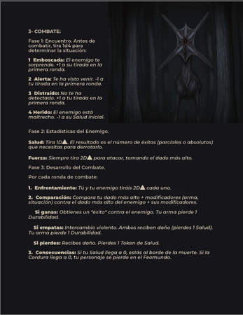 Sistemas y Herramientas: Este juego se ha construido modificando y combinando elementos de Caltrop Core de Titanomachy RPG, Carta SRD de Cat McDonald y la tipografía Dicier de Speak the Sky.